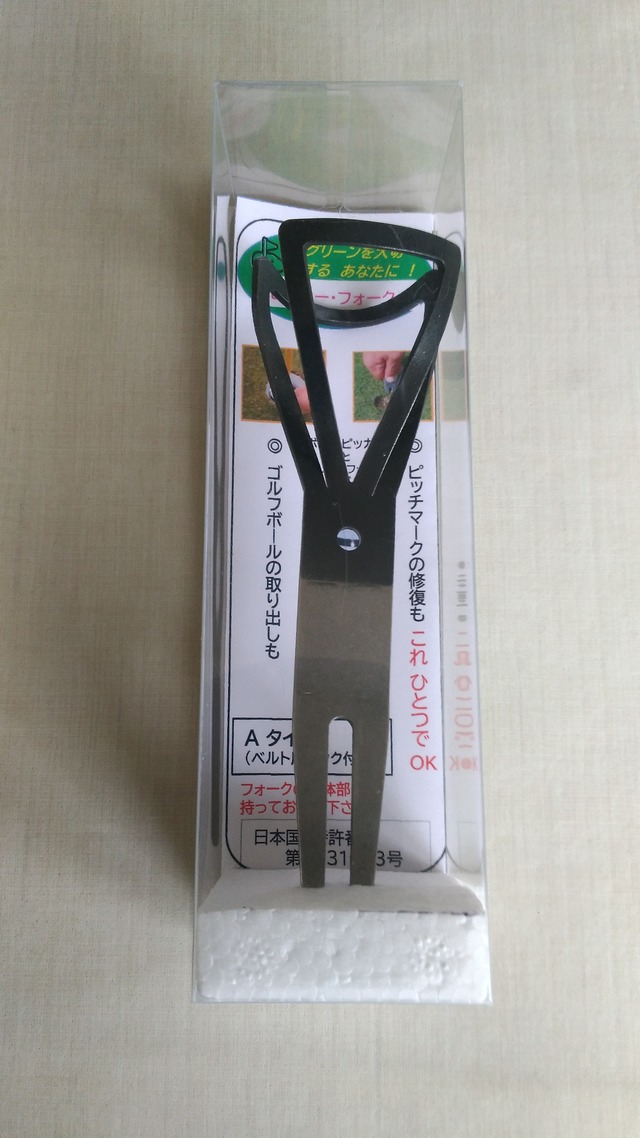 グリーン上でこんな悩みありませんか? ・ボールマークを修復したいが・・・ポケットからすぐにグリーフォークが取り出せない! ・カップインしたボールをうまく取り出せない・・・カップの縁を傷つけそうだ! そんなときに役立つのが「ピッカーフォーク」 ・携帯(収納)場所がパターのグリップエンド・・・サッと取り出してスムーズに使える! 使い方(動画)<Aタイプの使い方も基本的にCタイプと同じ> https://www.youtube.com/watch?v=94IGcUWecEg 「ゴルフボールピッカーとグリーンフォークが一つになった!」 ボールピッカー付きグリーンフォーク ⇒ 【ピッカー・フォーク】 背景 2019年ルール改定により、 ピンフラッグを立てたままでのパッティングが可能になりました。 効果 ◎ ボールピッカーを使うと・・・ 前傾することなく、立ったままの姿勢のままで、 OKボールの拾い上げも、 カップインしたボールの取りだしができます。 また、カップのフチを損傷することが少なくなります。 ◎フォークホルダーを使うと・・・ 保管場所をポケットから、パターのグリップへ変更できます。 面倒だったポッケトより取りだす手間が無くなるため、 簡単に使えるようになります。 取り扱い方法と注意事項 ● ゴルフボールをピックアップする場合とピッチマークの修復以外では使わないでください。 ●ピッカーとして使う場合は、 必ずフォークホルダーに装着して、お使い下さい。 「フォークホルダー」 パターのグリップエンド(孔)に挿入して使用する。