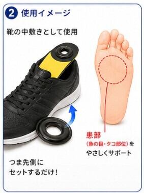 【足楽パッド】魚の目 タコ 足裏痛対策 インソール 衝撃吸収 圧力分散 薄型 中敷き 左右セット