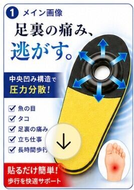 この商品は、特に足裏の圧力を分散し、衝撃を吸収する設計となっており、毎日の歩行や立ち仕事をサポートします。